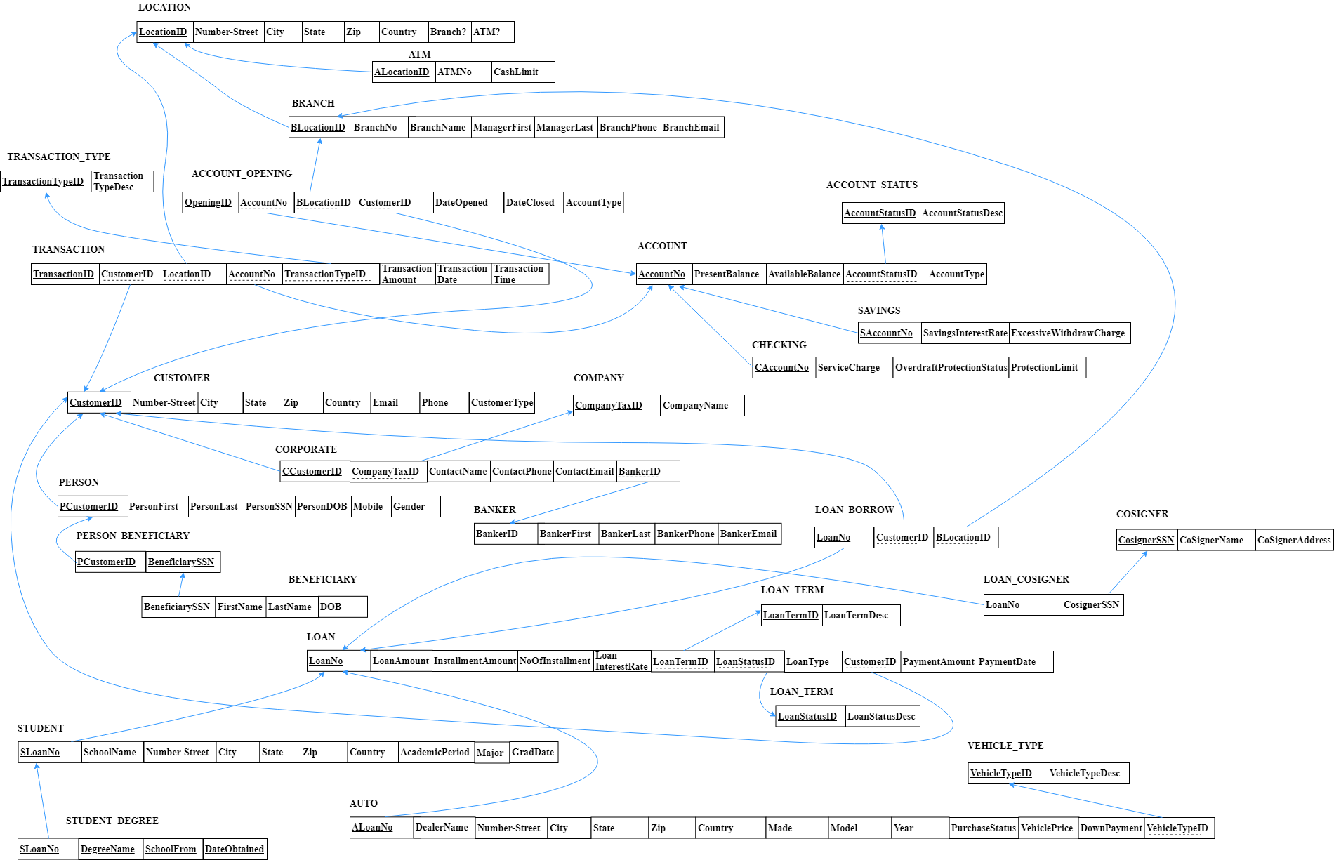This is a mock up project for a Banking Transaction Management System database application named EZBanking.com, to automate the managing of customers, banking transactions, bank accounts, and banking locations such as branches and ATM machines.