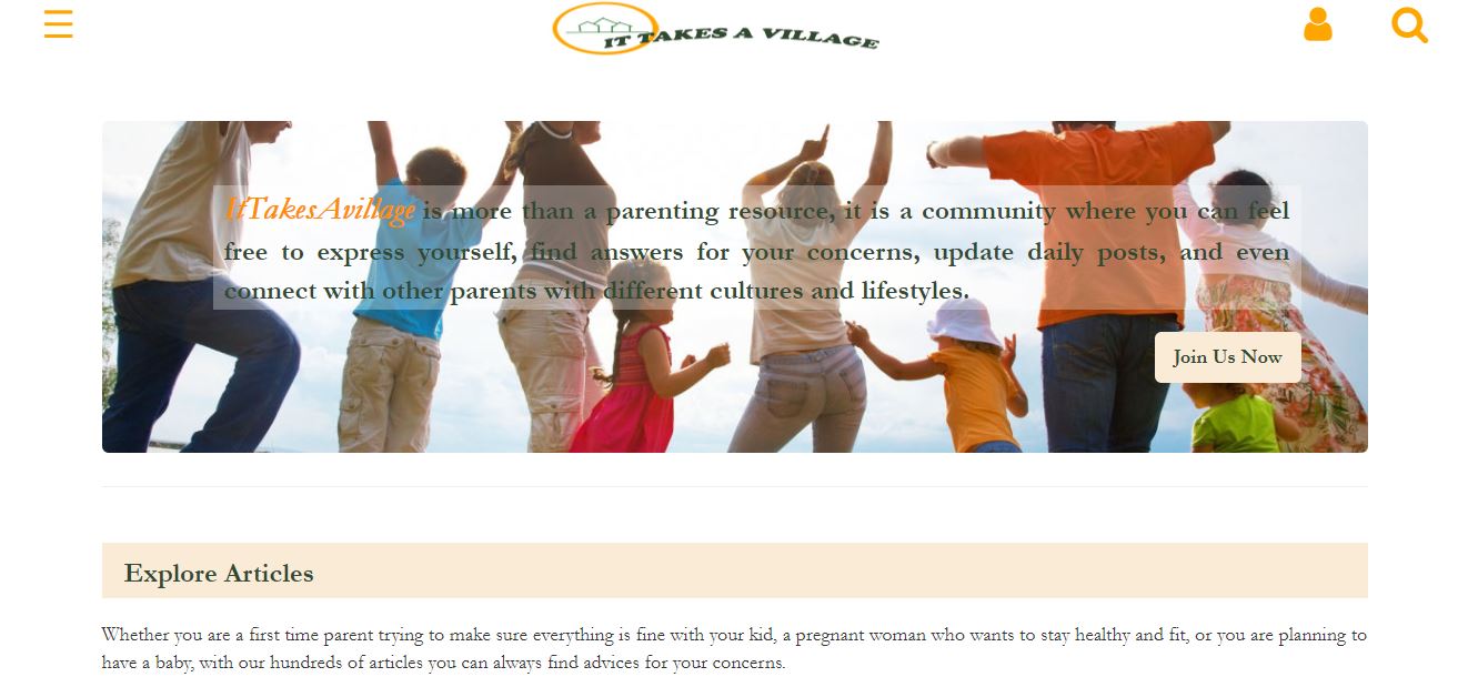 ItTakesAvillage is a web-based application where users can share parenting information and communicate with each other.
